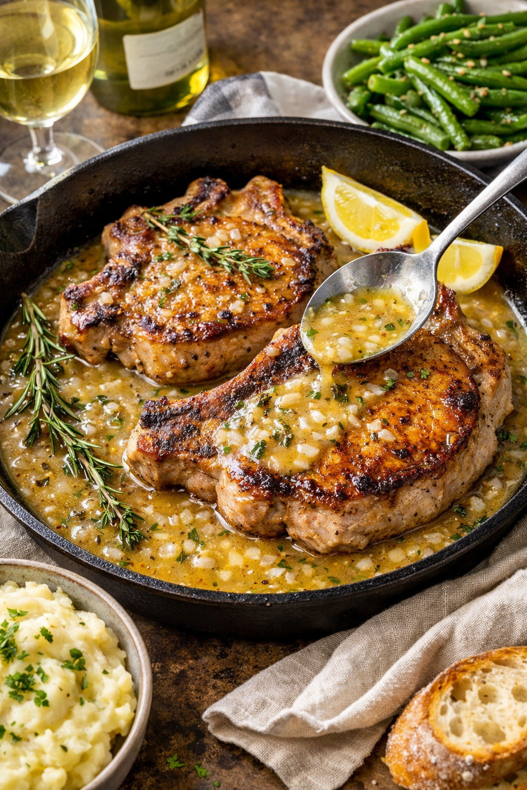 Pan-Seared Pork Chops with White Wine Butter Sauce